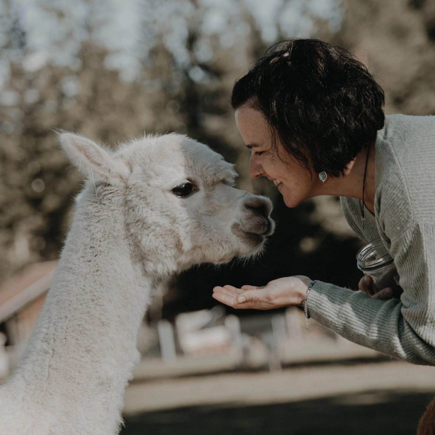 Hallo, ich bin Maria Draxl, tiergestützte Pädagogin und leidenschaftliche Alpaka-und Lama Halterin.